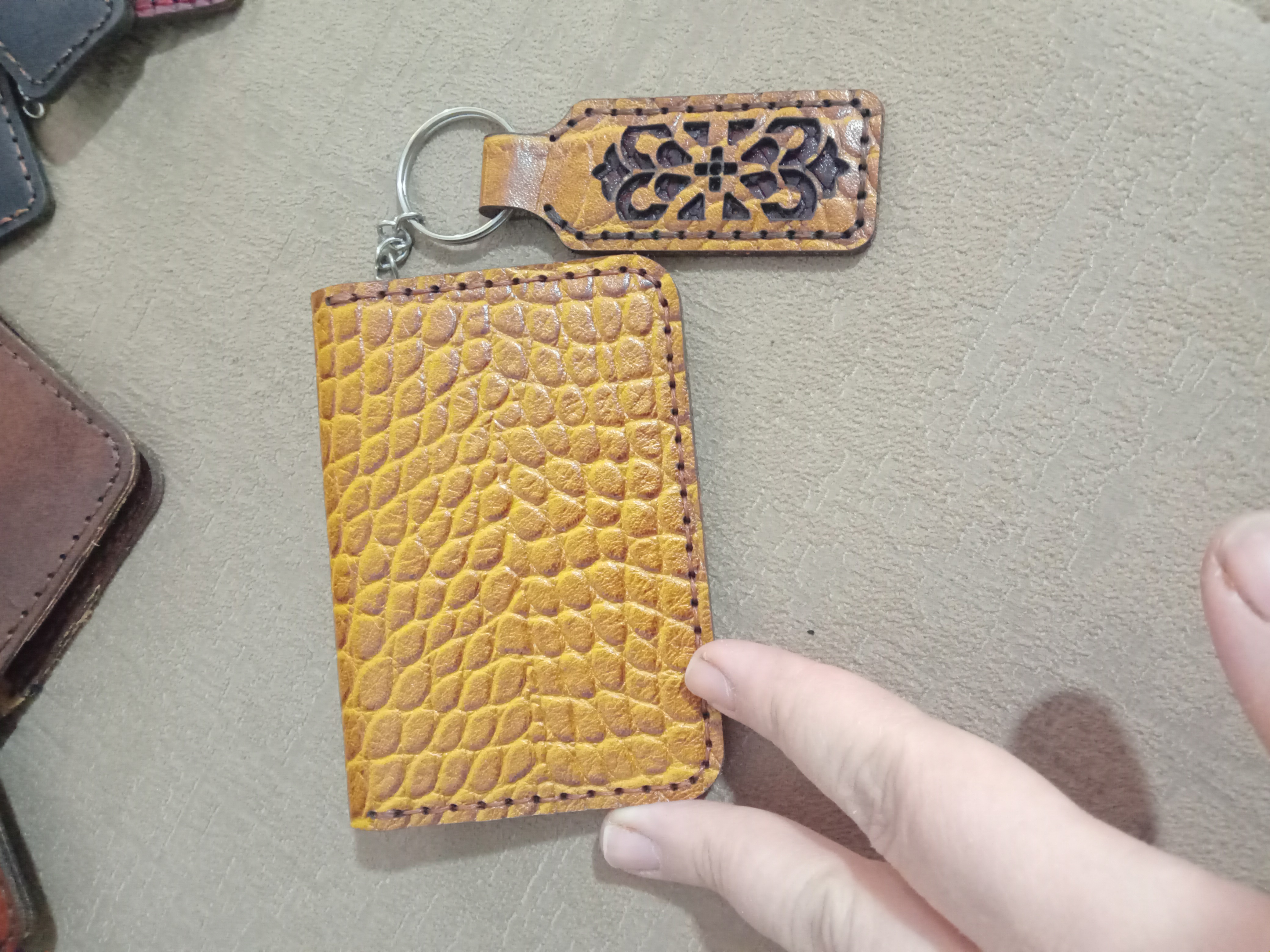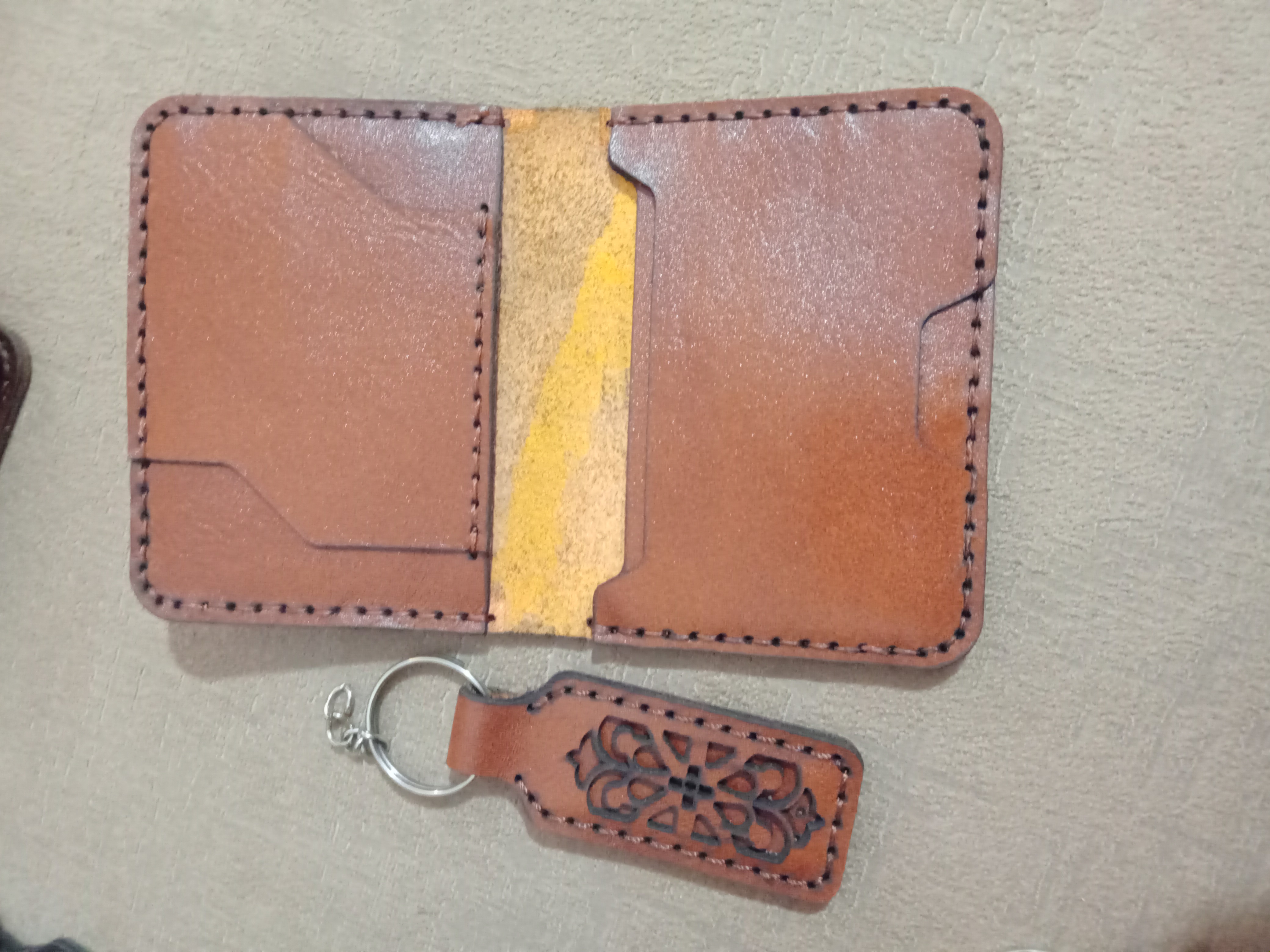 جا کارتی چرم طبیعی مدل کوروش به همرا جا کلیدی اسلیمی